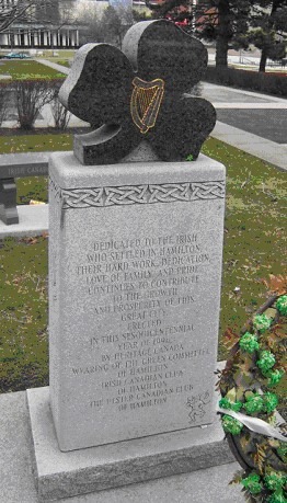 In 1997 the Wearing of the Green committee worked with the Irish Canadian Club, the Ulster Club and the Ministry of Canadian Heritage to create a monument to acknowledge the Irish contribution to Hamilton.
